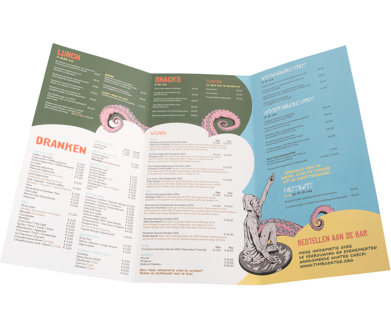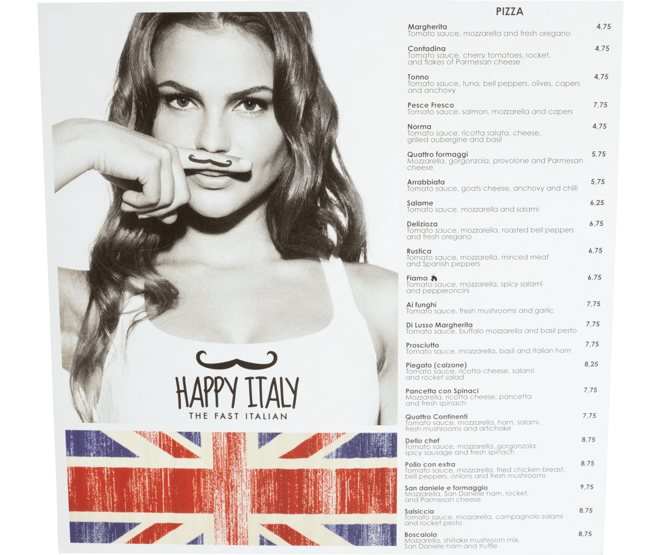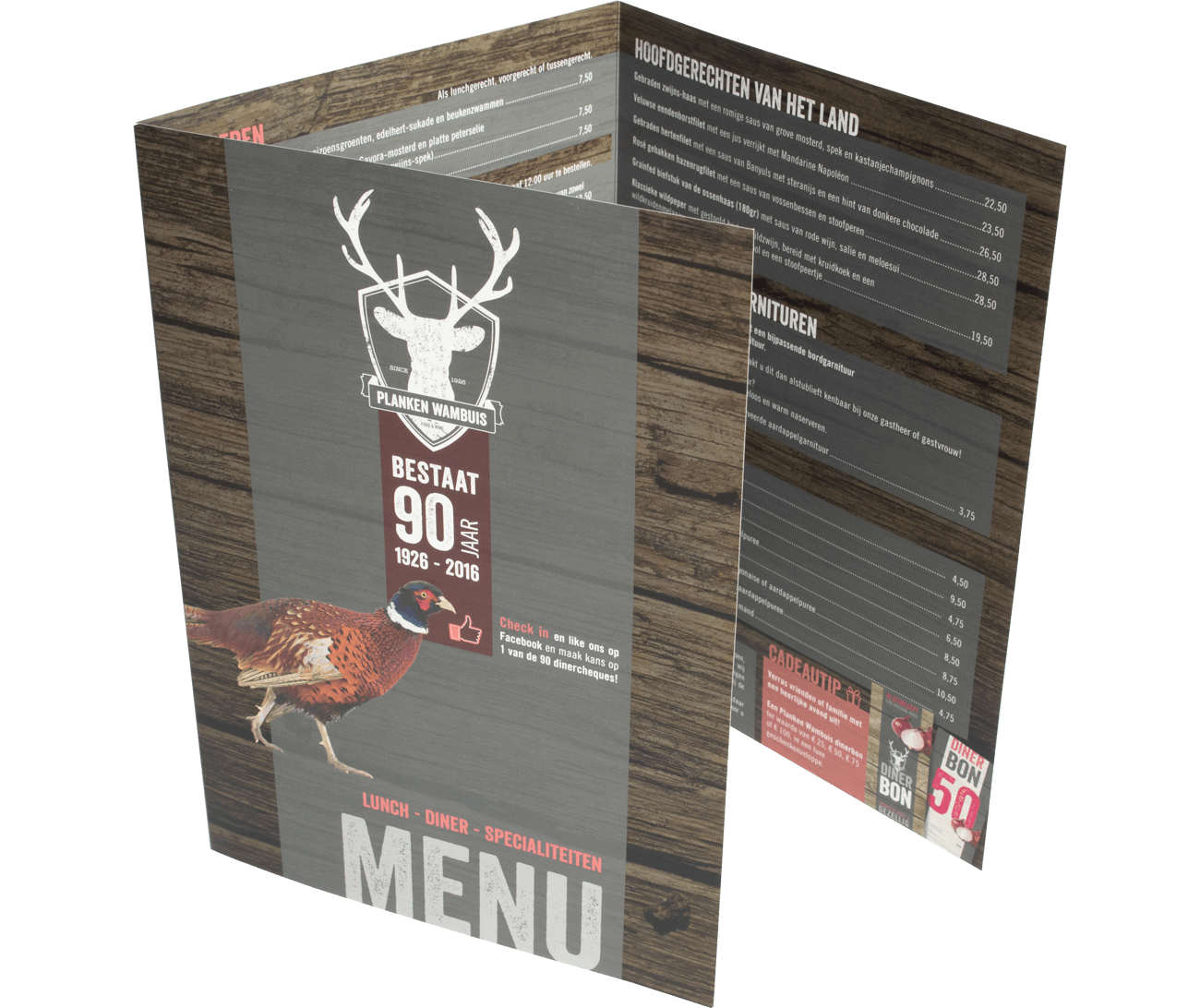 Professionele afhaalkaarten drukken bij Flyersonline voor uw horecaonderneming. De afhaalkaarten zijn te bedrukken op 5 verschillende papiersoorten. Om uw afhaalkaarten een extra luxe uitstraling te geven kunt u kiezen voor glans, mat of krasvast laminaat. Door het gebruik van laminaat zijn de afhaalkaarten gemakkelijk af te doen met een doekje. De gevouwen afhaalkaarten worden voorzien van één of meerdere rillen afhankelijk van de gekozen vouwwijze. De afhaalkaarten worden plano, uitgevouwen geleverd.