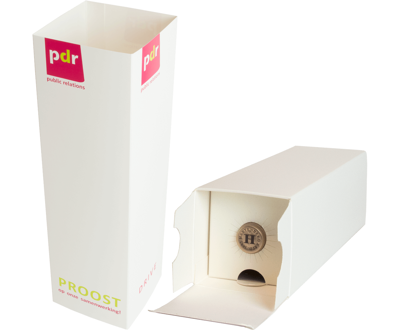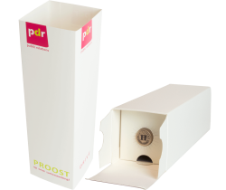 Deze white solid cardboard wijndoos van 600 grams heeft een formaat van 90 x 90 x 320 mm. De wijn dozen hebben een matte laminering waardoor het een luxe maar toch zachte touch geeft. De bedrukbare sleeve (92,5 x 92,5 x 318 mm) van 300 grams sulfaatkarton wordt enkelzijdig of dubbelzijdig in full colour bedrukt en wordt geplakt geleverd. Je hoeft enkel de sleeve om de bijgeleverde (gekleurde) wijndoos te schuiven. Liever een wijndoos zonder bedrukbare sleeve? Bekijk dan de blanco wijndoos.