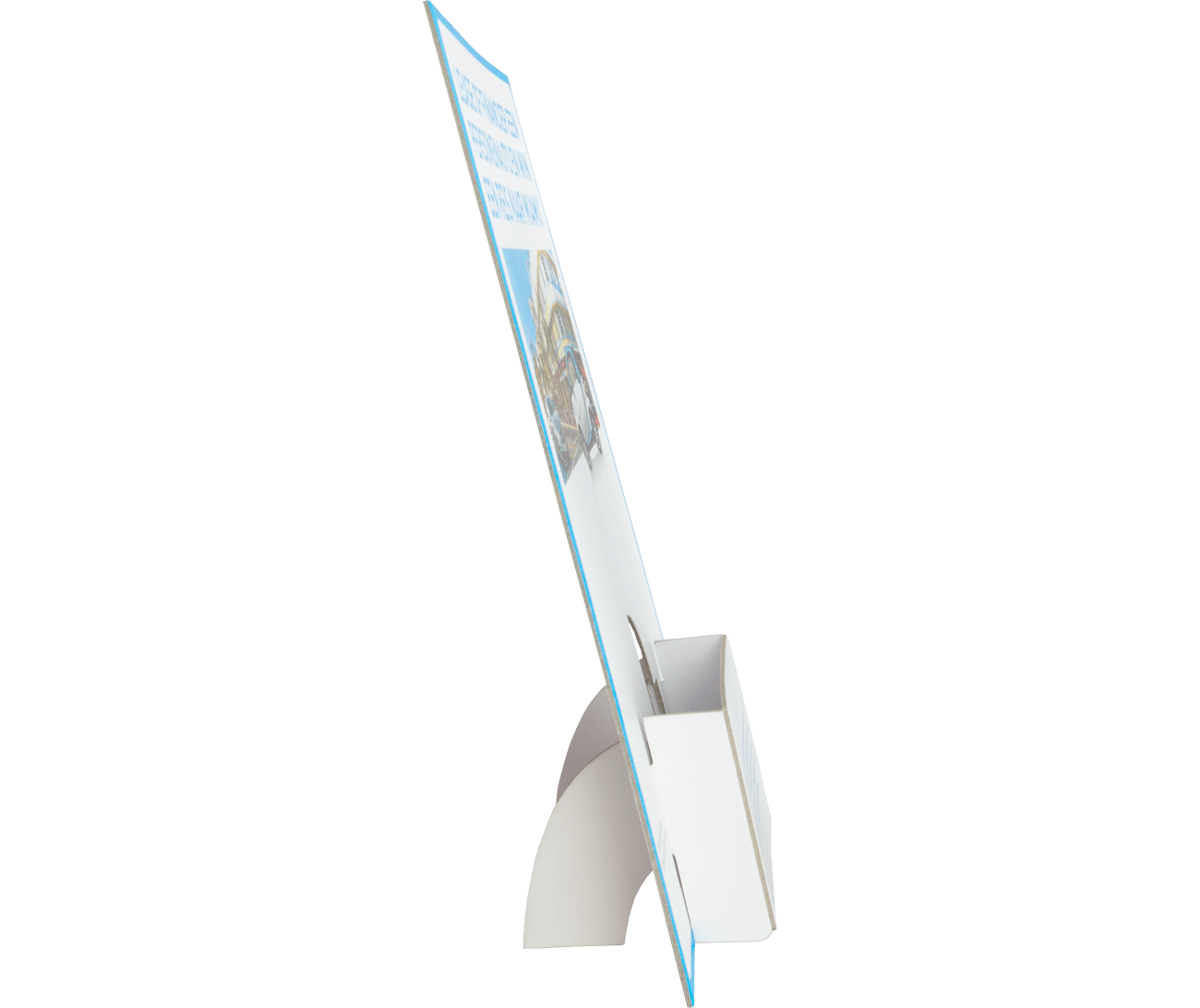 De folderbakjes (ook wel folderhouders of folderdisplays genoemd) zijn gemakkelijk op te zetten. Door het unieke draaisysteem van de folderbakjes hoeft u nooit meer aan de slag met plakband of lijm. De folderdisplays worden enkelzijdig gedrukt op papier en vervolgens gecacheerd (geplakt) op 1275 grams eenzijdig wit karton. Dit karton maakt uw folderbakjes extra stevig, zo blijven ze op elke balie of toonbank staan.