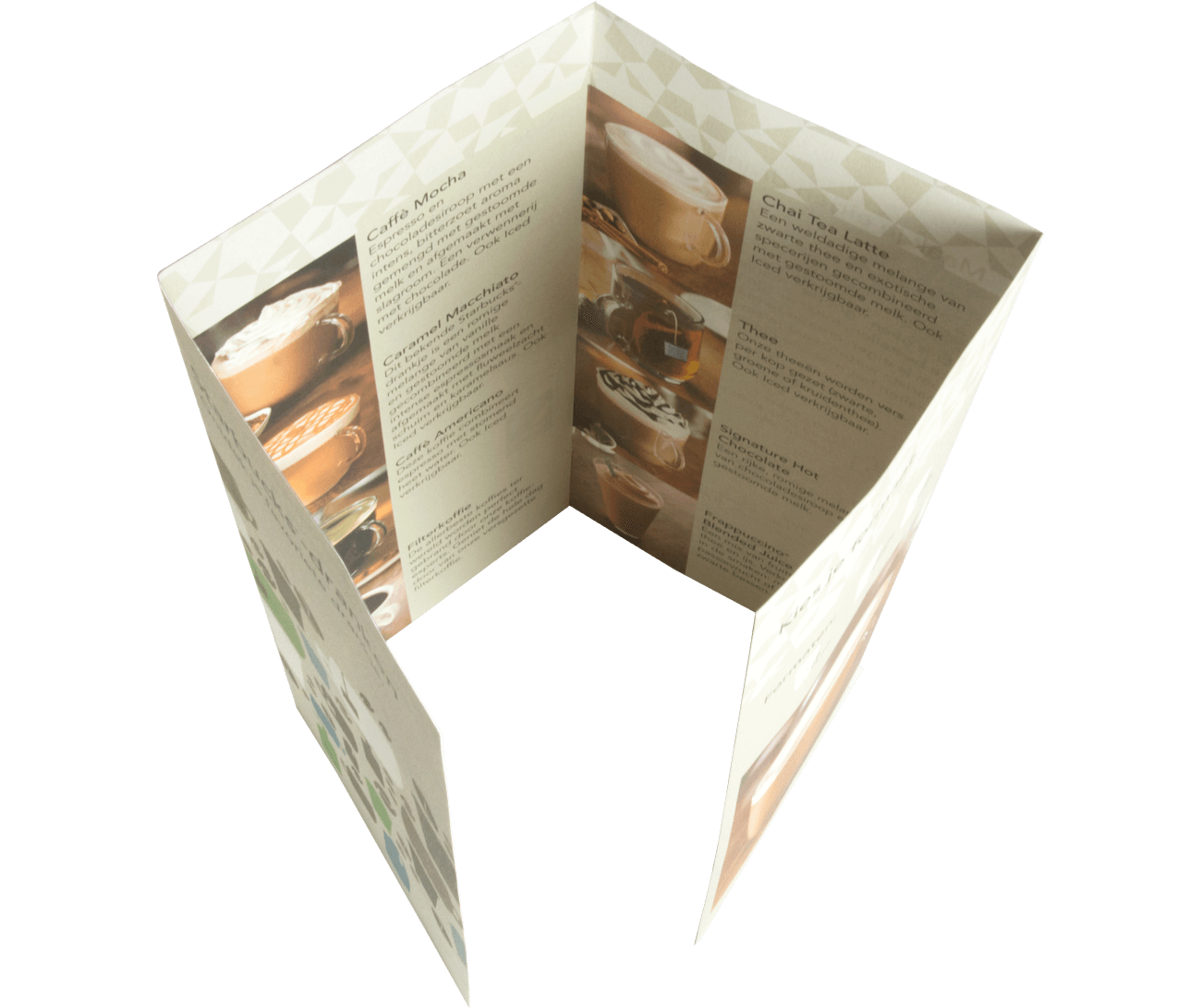 Deze 4-luik folders hebben een driedubbele vouw en bestaan uit 8 pagina's A4 (210 x 297 mm). De folders worden gedrukt op gesatineerd (glanzend) papier waarbij er gekozen kan worden uit 7 verschillende gramsgewichten. Deze staande A4 folders met een gesloten luikvouw zijn al leverbaar vanaf 500 stuks. Kleine oplage folders bestellen? Bekijk de folders in kleine oplage.