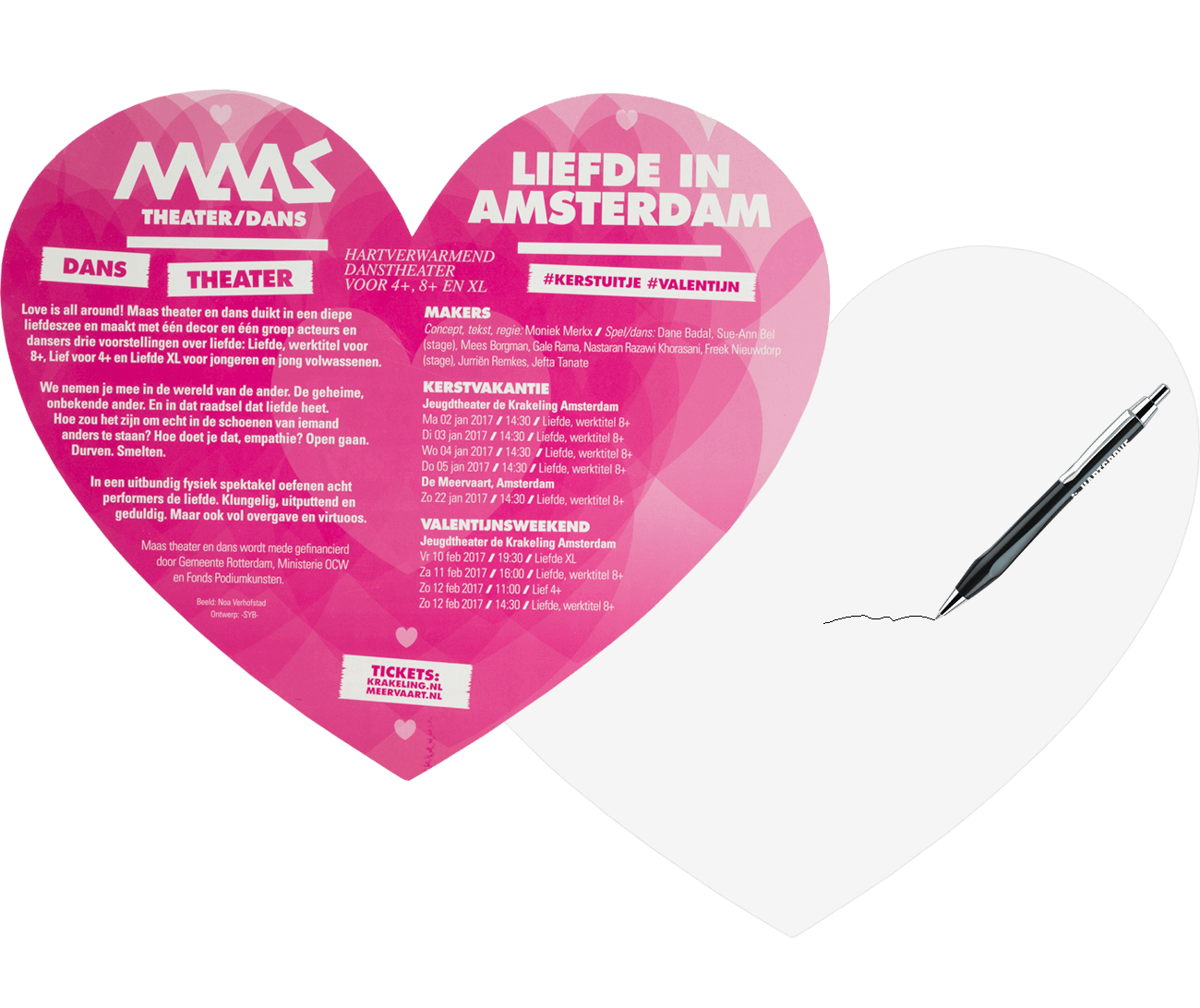 Verras uw relaties met deze opvallende hart ansichtkaarten. Deze hart kaarten worden gedrukt op extra stevig eenzijdig sulfaatkarton papier. Dit is een papiersoort met aan de ene zijde een glanzende uitstraling en de andere een matte beschrijfbare zijde. Liever een ansichtkaart in een andere vorm? Bekijk ons aanbod gestanste ansichtkaarten.
