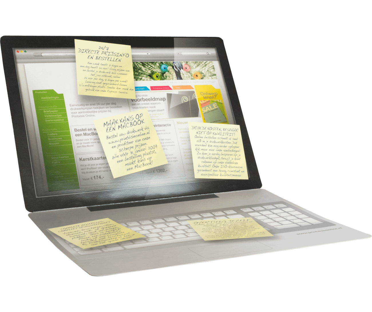 Deze gevouwen laptop wenskaarten worden gedrukt op extra stevig 285 grams eenzijdig sulfaatkarton papier. Dit is een papiersoort met aan de ene zijde een glanzende uitstraling en de andere zijde een matte uitstraling. De matte zijde is keurig beschrijfbaar. De kleine oplage is al leverbaar vanaf 25 stuks en de grote oplage vanaf 1000 stuks.