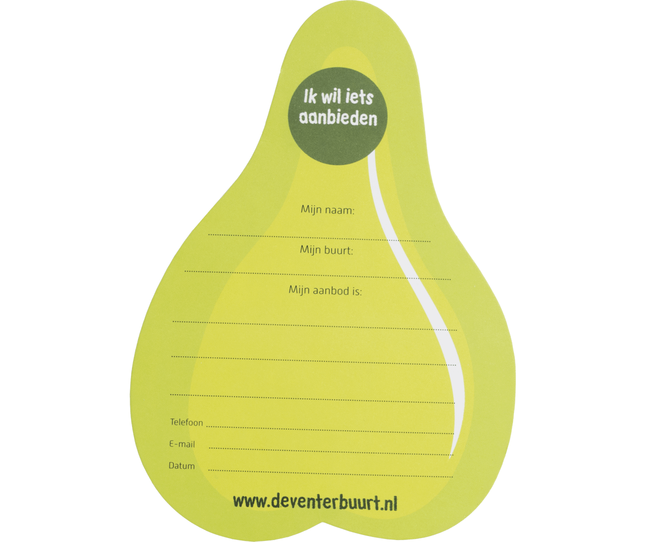 Een peer vorm die perfect aansluit op uw fruitcampagne! Druk uw peer flyers enkelzijdig of dubbelzijdig in full colour en kies optioneel voor glans laminaat, mat laminaat of krasvast laminaat voor een luxe uitstraling. Bovendien zorgt laminaat voor een extra stevige flyer. Meerdere ontwerpen gemakkelijk in één keer bestellen? Dat kan tot maximaal 20 ontwerpen.