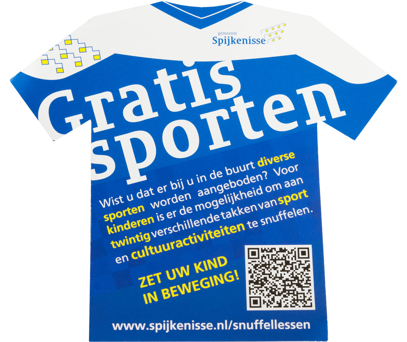 Leuk om een sportevenement effectief te promoten! Bedruk uw shirt flyers enkelzijdig of dubbelzijdig in full colour. De kleine shirt flyer heeft een formaat van 143 x 125 mm en de grote shirt 170 x 150 mm. Opvallende gestanste flyers in verschillende papiersoorten met als optie mat- of glanslaminaat. Leverbaar vanaf 25 stuks en al binnen 24 uur in huis.