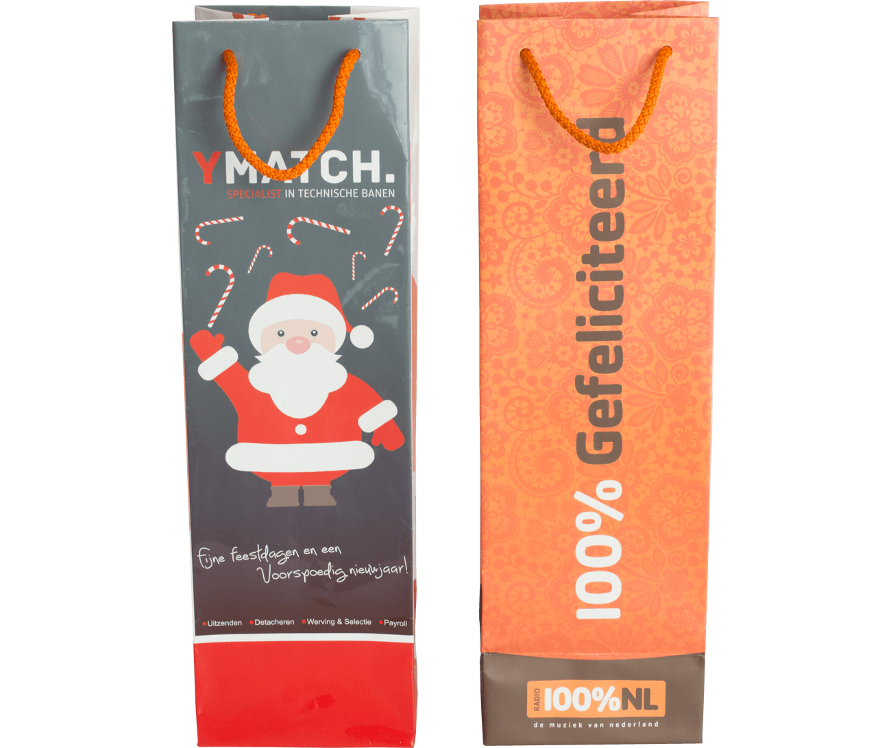 Deze stevige en kwalitatieve wijntassen zijn perfect ter verpakking voor een heerlijke fles wijn. Door de luxe lamineerlaag krijgt uw geschenkstas een hoogwaardige uitstraling. U kunt de wijntas personaliseren naar uw eigen design of in de stijl van uw bedrijf of organisatie. Maak een keuze uit de verschillende kleuren hengels voor net dat tikje extra. Daarnaast kunt u voor de afwerking ook nog kiezen voor glans- of matlaminaat. Met een gepersonaliseerde wijntas wordt uw geschenk pas echt bijzonder!