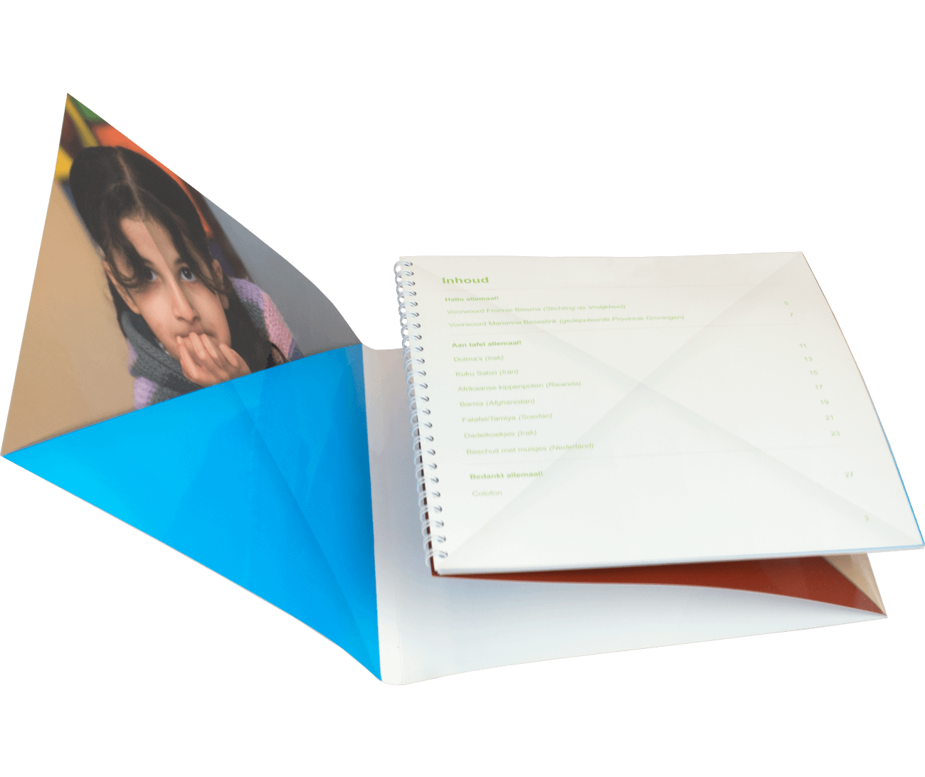 Bij deze wire-o brochures is de spiraal niet zichtbaar door een extra flap aan de omslag. De spiraal is pas zichtbaar wanneer de brochure opengeslagen wordt. U heeft de keuze uit verschillende formaten en papiersoorten.